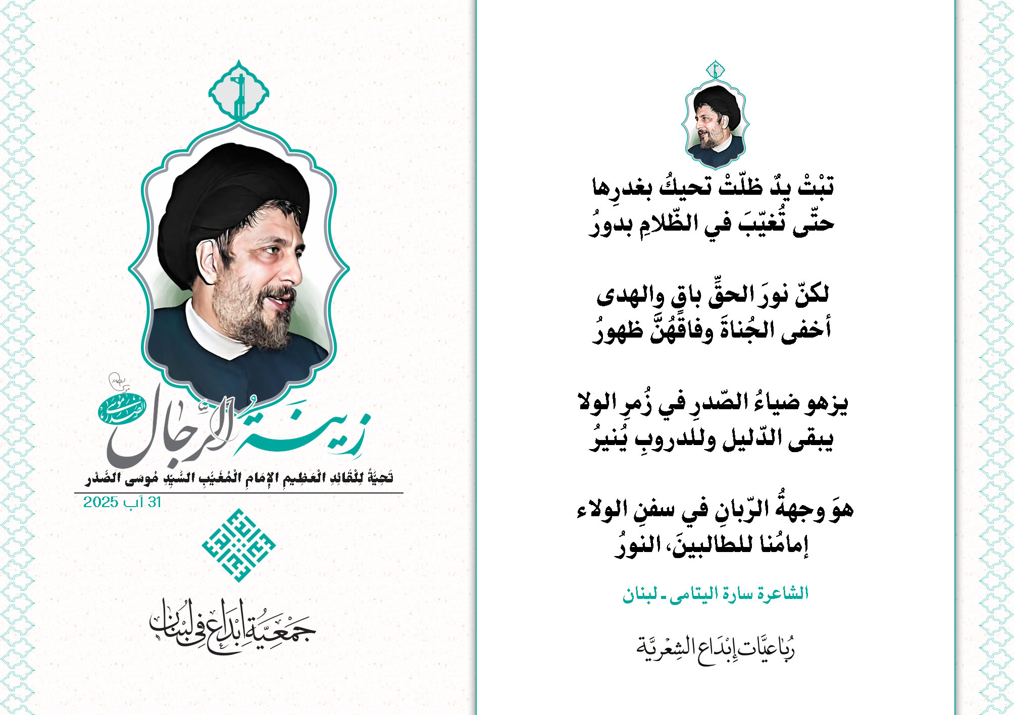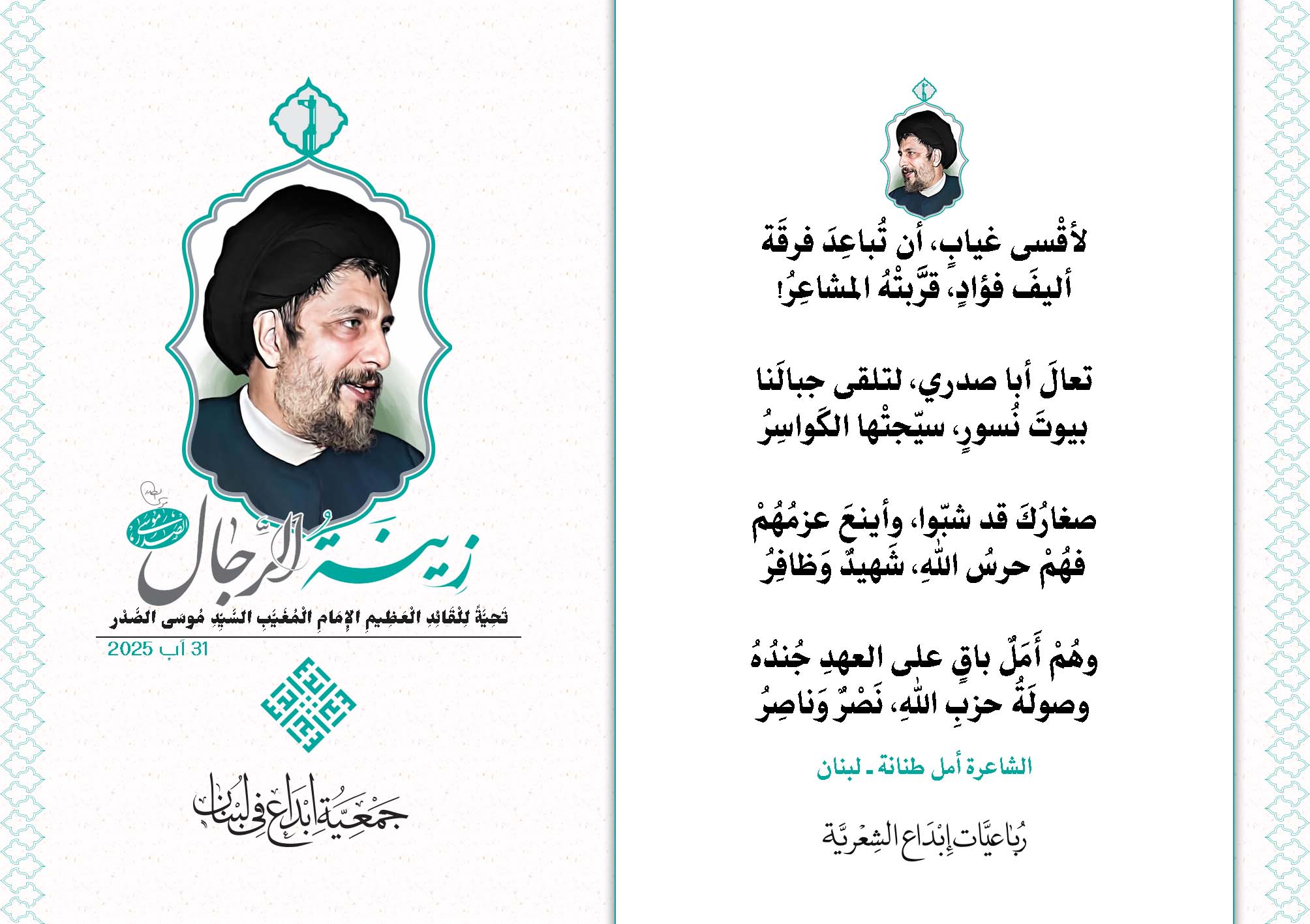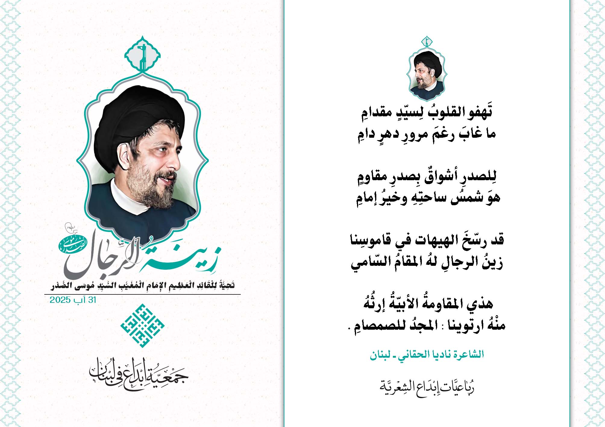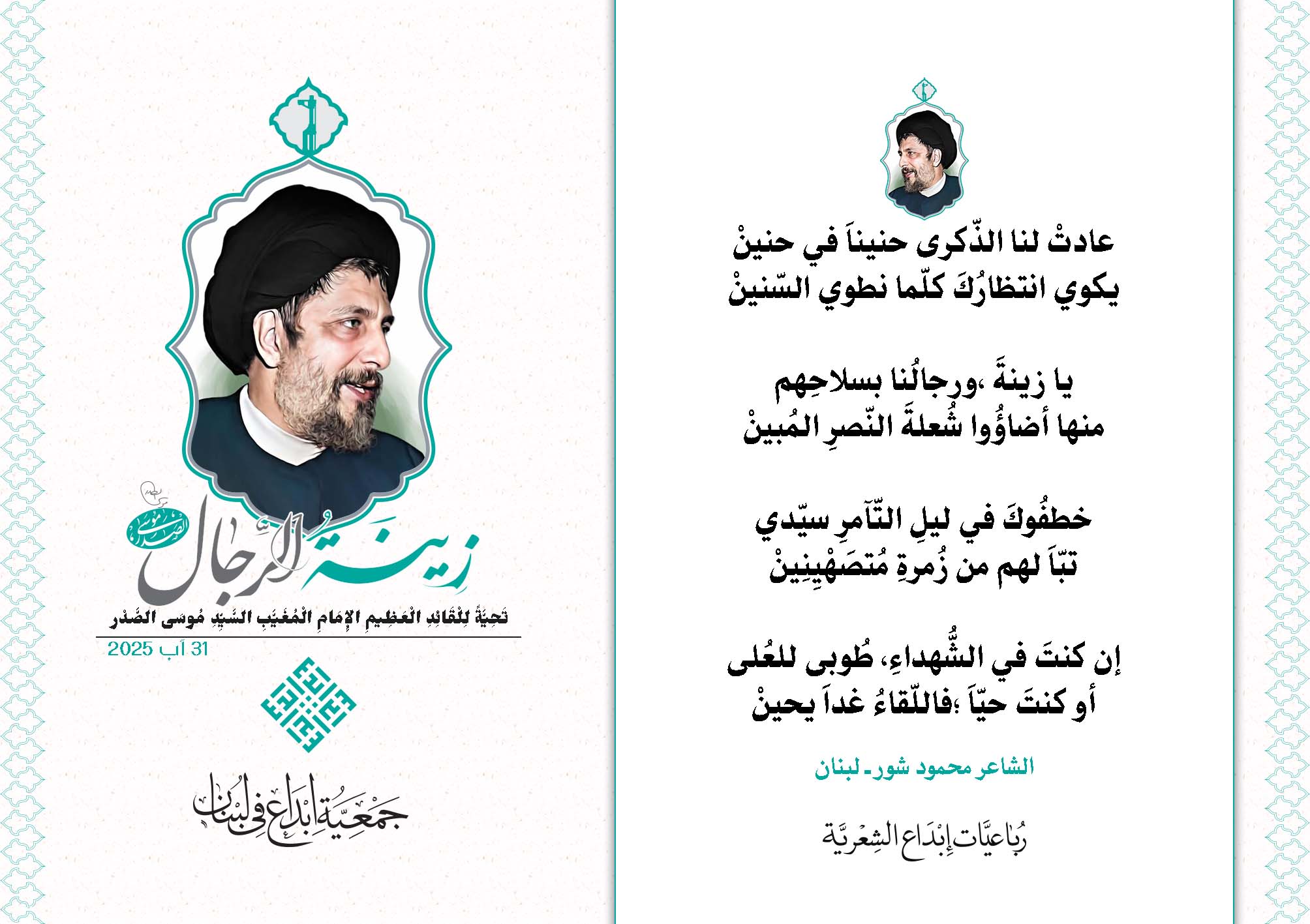 اطلقت جمعية ابداع في لبنان حملة شعرية تحت عنوان زينة الرجال و ذلك في ذكرى تغييب الامام السيد موسى الصدر اعاده الله