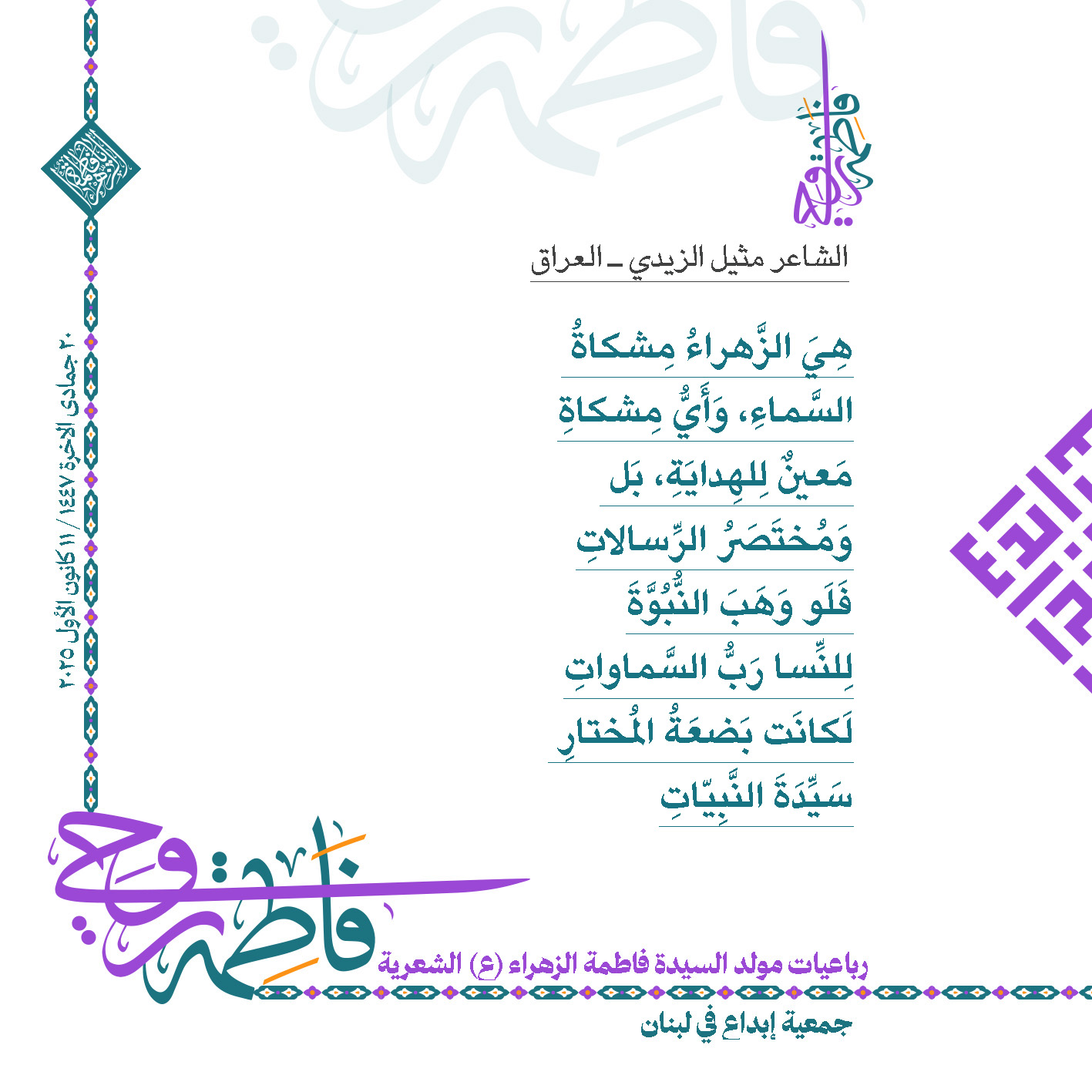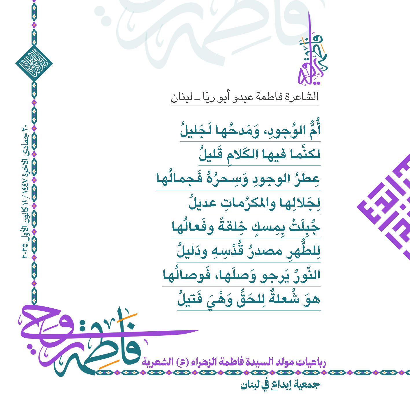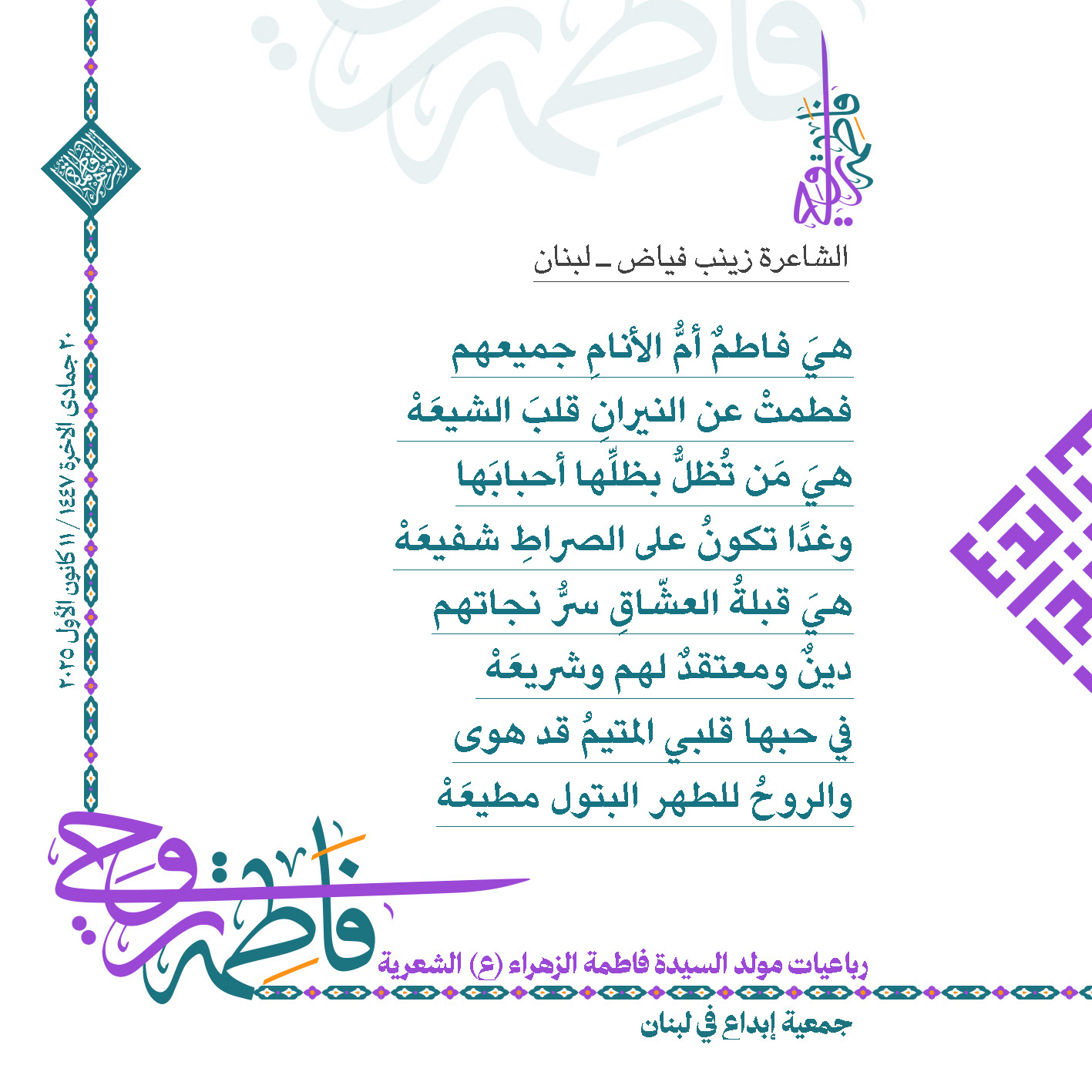 #فاطمة_روحي رباعيات #إبداع الشعرية بذكرى مولد السيدة #فاطمة_الزهراء (ع)