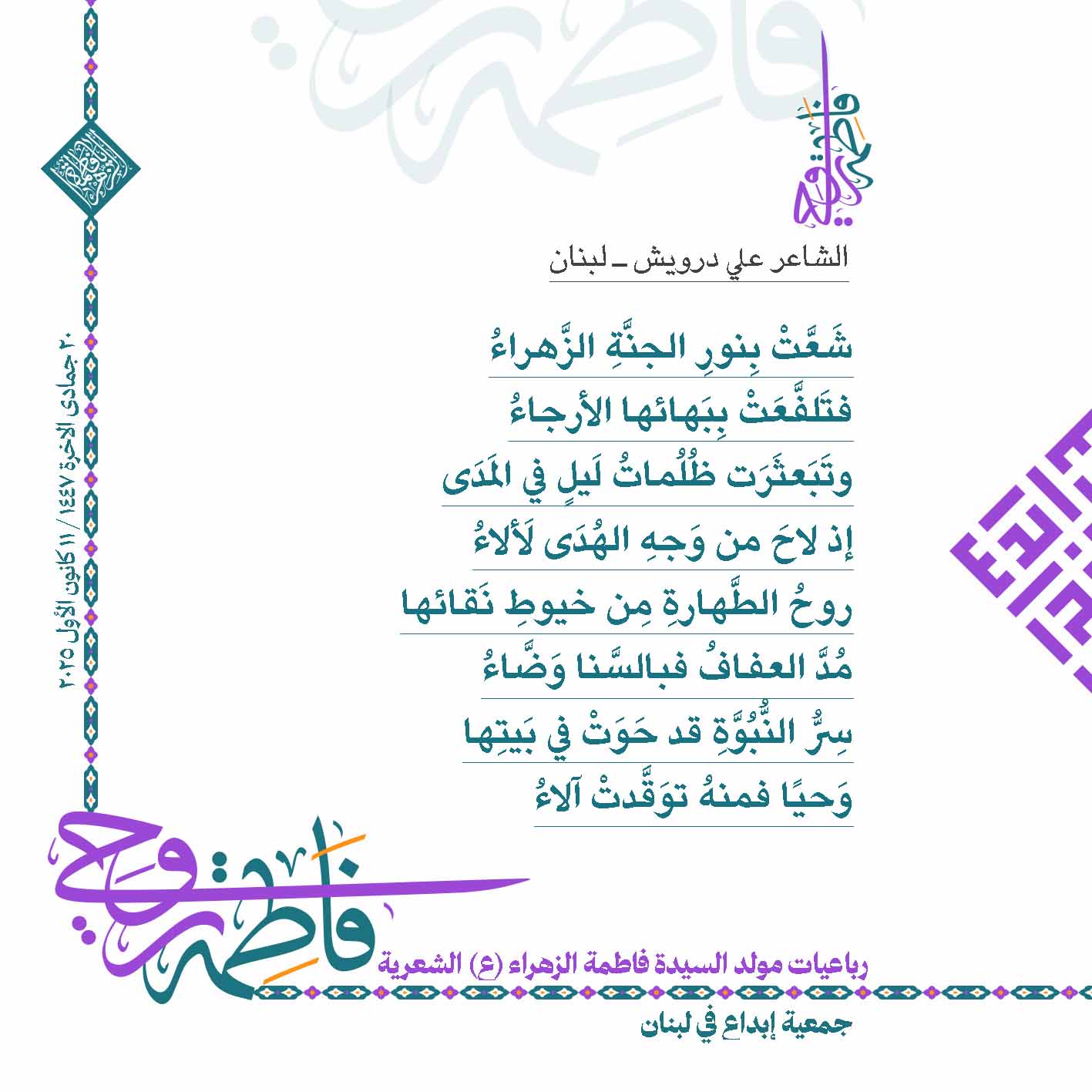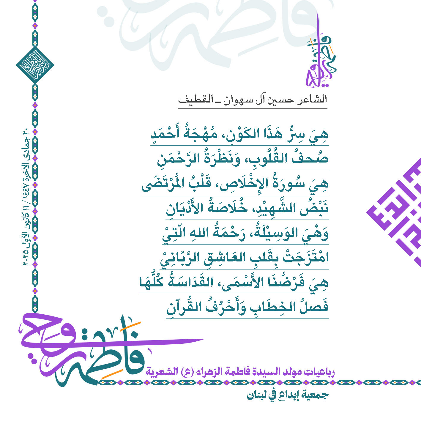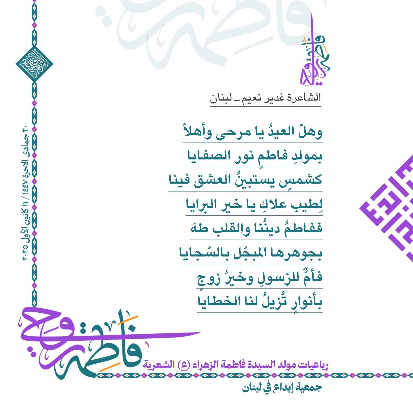 #فاطمة_روحي رباعيات #إبداع الشعرية بذكرى مولد السيدة #فاطمة_الزهراء (ع)