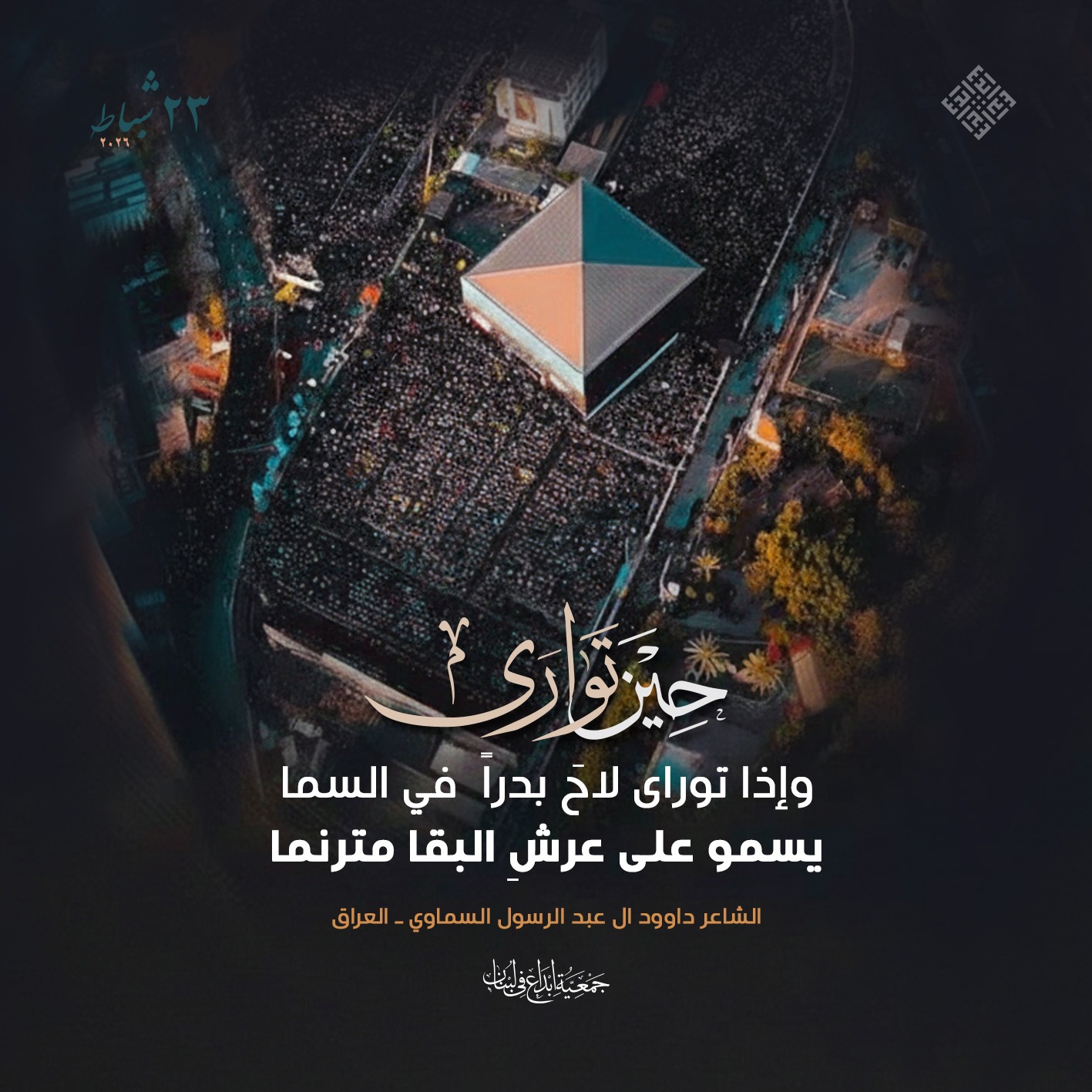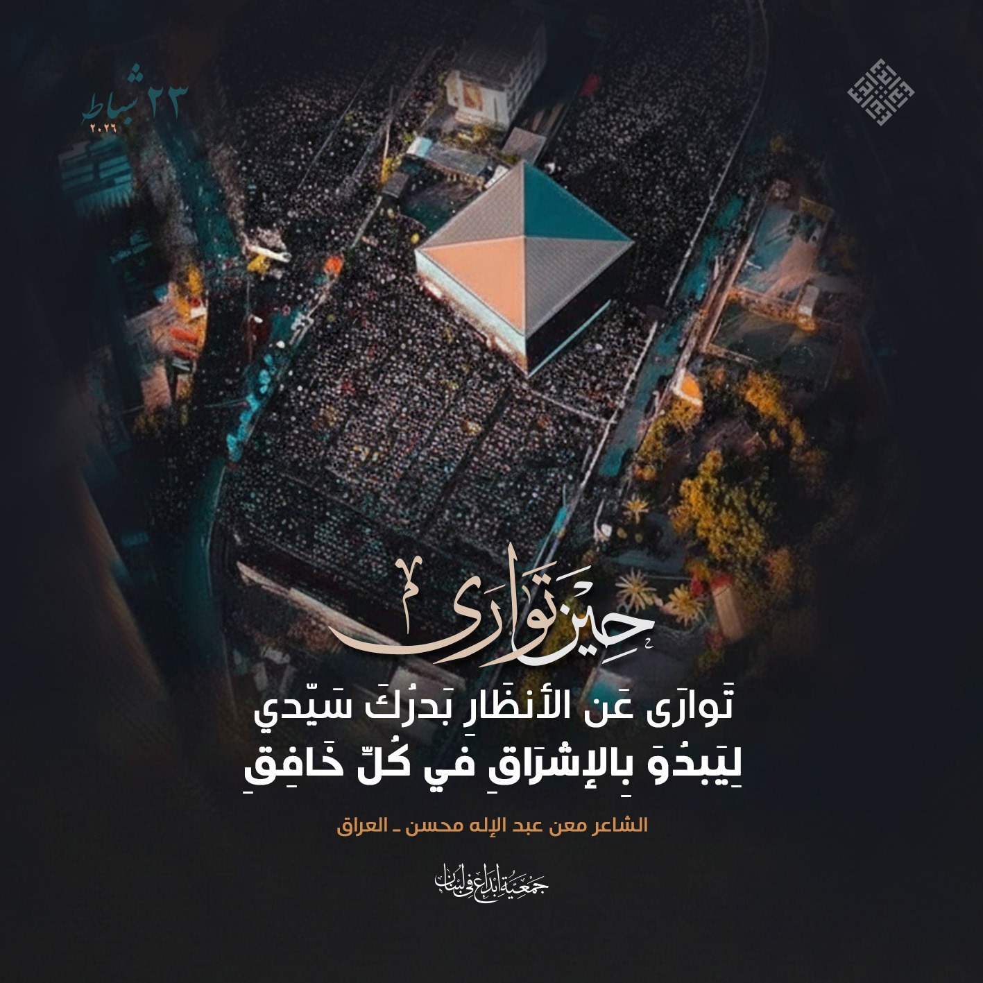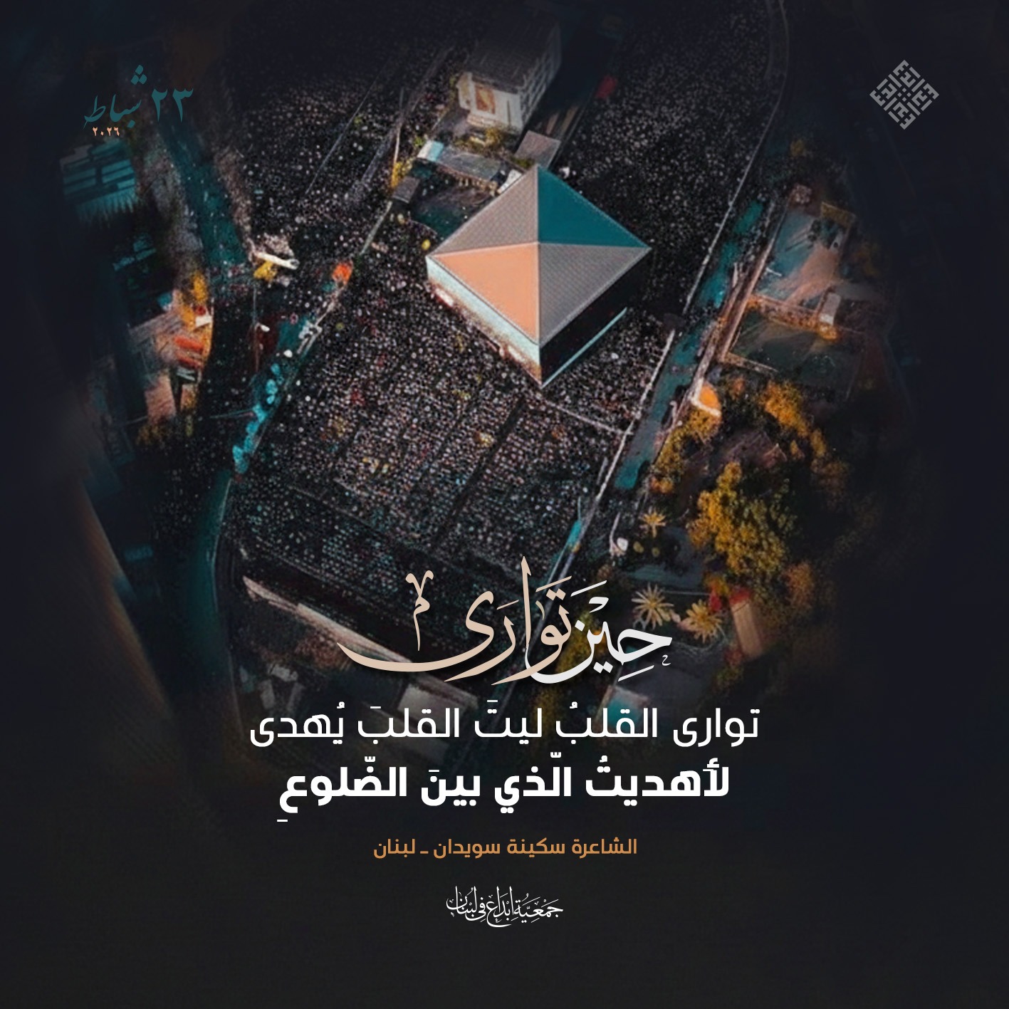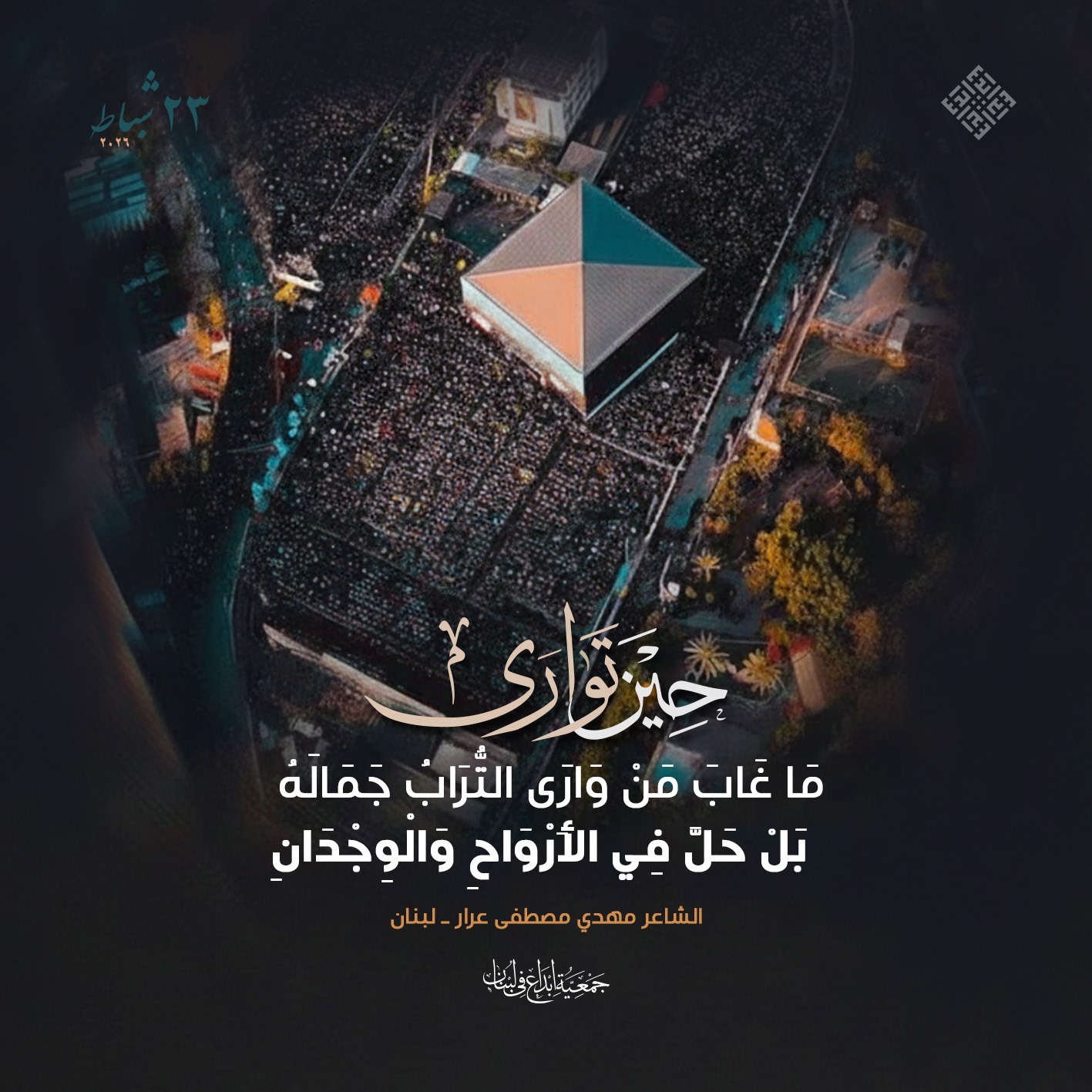 #حين_توارى حملة #إبداع الشعرية بذكرى تشييع مولانا #السيد #المستطاب #سيد_شهداء_الأمة المشاركون في الحملة : 1. الشاعر الشيخ حسين فقيه ـ لبنان 2. الشاعر الشيخ سلمان ال عبد الرسول السماوي ـ العراق 3. الشاعر أبو ميرزا مهدي 4. الشاعر أحمد علي أحمد ـ لبنان 5. الشاعر أحمد غالب سرحان ـ لبنان 6. الشاعر جواد حايك ـ لبنان 7. الشاعر حسن سامي العبد الله ـ العراق 8. الشاعر حسين صفوان ـ لبنان 9. الشاعر داوود ال عبد الرسول السماوي ـ العراق 10. الشاعر زكريا المنخي ـ العراق 11. الشاعر ضياء عاشور ـ العراق 12. الشاعر عبد الله خليفة ـ لبنان 13. الشاعر علي أسامة الحاج دياب ـ لبنان 14. الشاعر علي درويش ـ لبنان 15. الشاعر علي مرتضى السندي ـ العراق 16. الشاعر محمود شور ـ لبنان 17. الشاعر معن عبد الإله محسن ـ العراق 18. الشاعر مهدي البزّال ـ لبنان 19. الشاعر مهدي مصطفى عرار ـ لبنان 20. الشاعرة إسراء شبلي ـ لبنان 21. الشاعرة إسراء لافي عودة ـ لبنان 22. الشاعرة أمل سرور ـ لبنان 23. الشاعرة حوراء حميّة ـ لبنان 24. الشاعرة زهراء درويش ـ لبنان 25. الشاعرة زينب الموسوي ـ لبنان 26. الشاعرة سارة اليتامى ـ لبنان 27. الشاعرة سكينة سويدان ـ لبنان 28. الشاعرة غدير نعيم ـ لبنان 29. الشاعرة فاطمة العوطة ـ لبنان 30. الشاعرة فاطمة سكاف ـ لبنان 31. الشاعرة كوثر العطار ـ لبنان 32. الشاعرة كوثر حجازي ـ لبنان 33. الشاعرة مريم عبيد ـ لبنان 34. الشاعرة مريم عصمان ـ لبنان 35. الشاعرة منال بجيجي ـ لبنان 36. الشاعرة ميسم مغنية ـ لبنان 37. الشاعرة ناديا الحقاني ـ لبنان 38. الشاعرة نبال رعد ـ لبنان 39. الشاعرة نور مصطفى لمع ـ لبنان 40. الشاعرة هناء إبراهيم ـ لبنان ... #إبداع #حين_توارى 23 شباط 2026 #تشييع_السيد