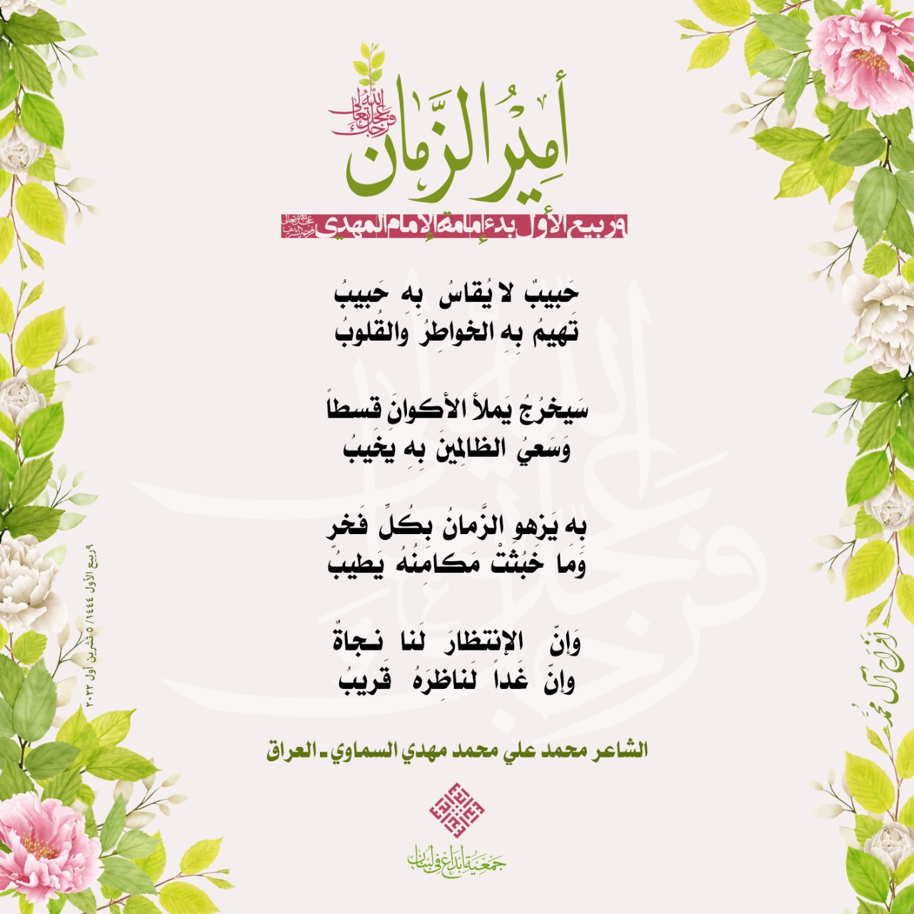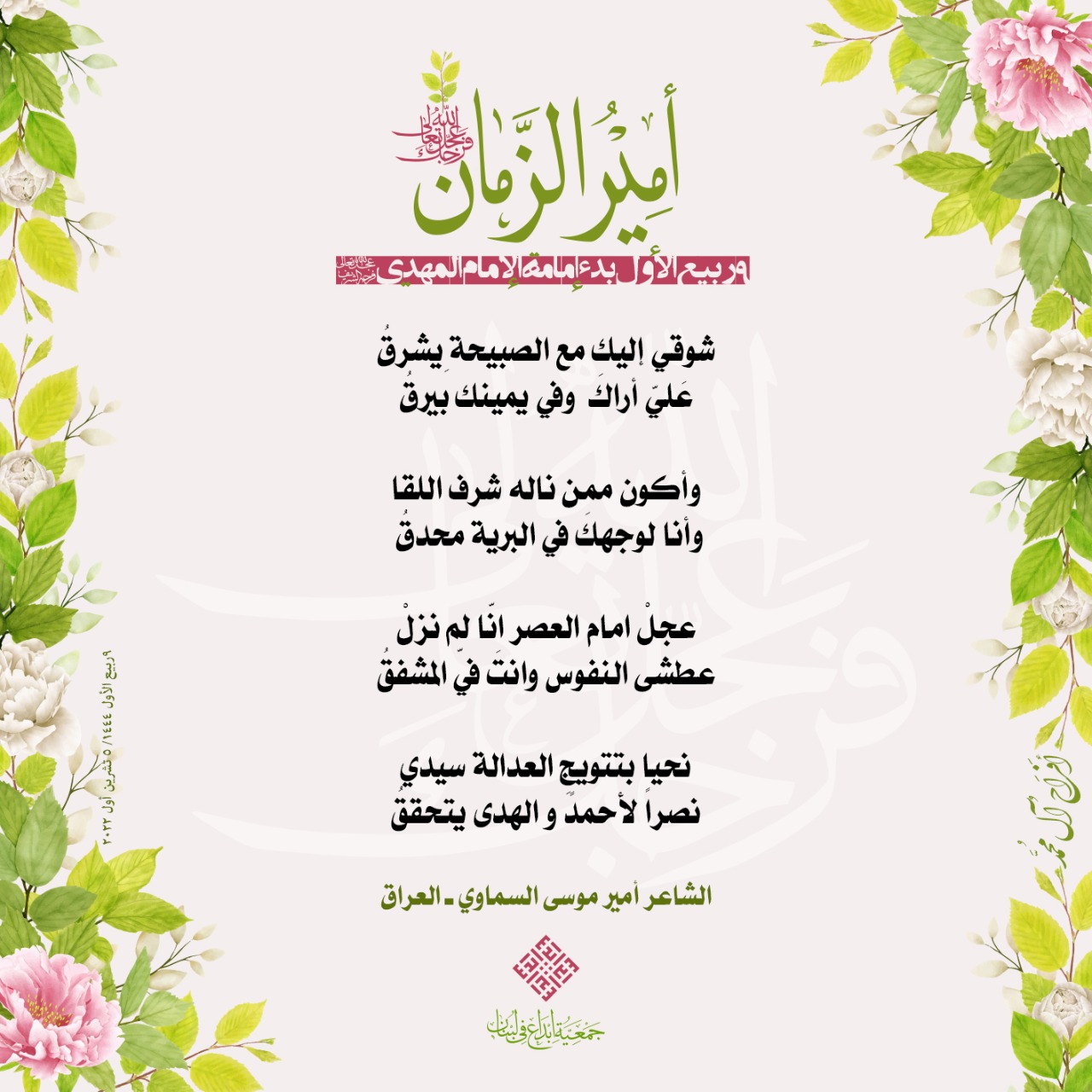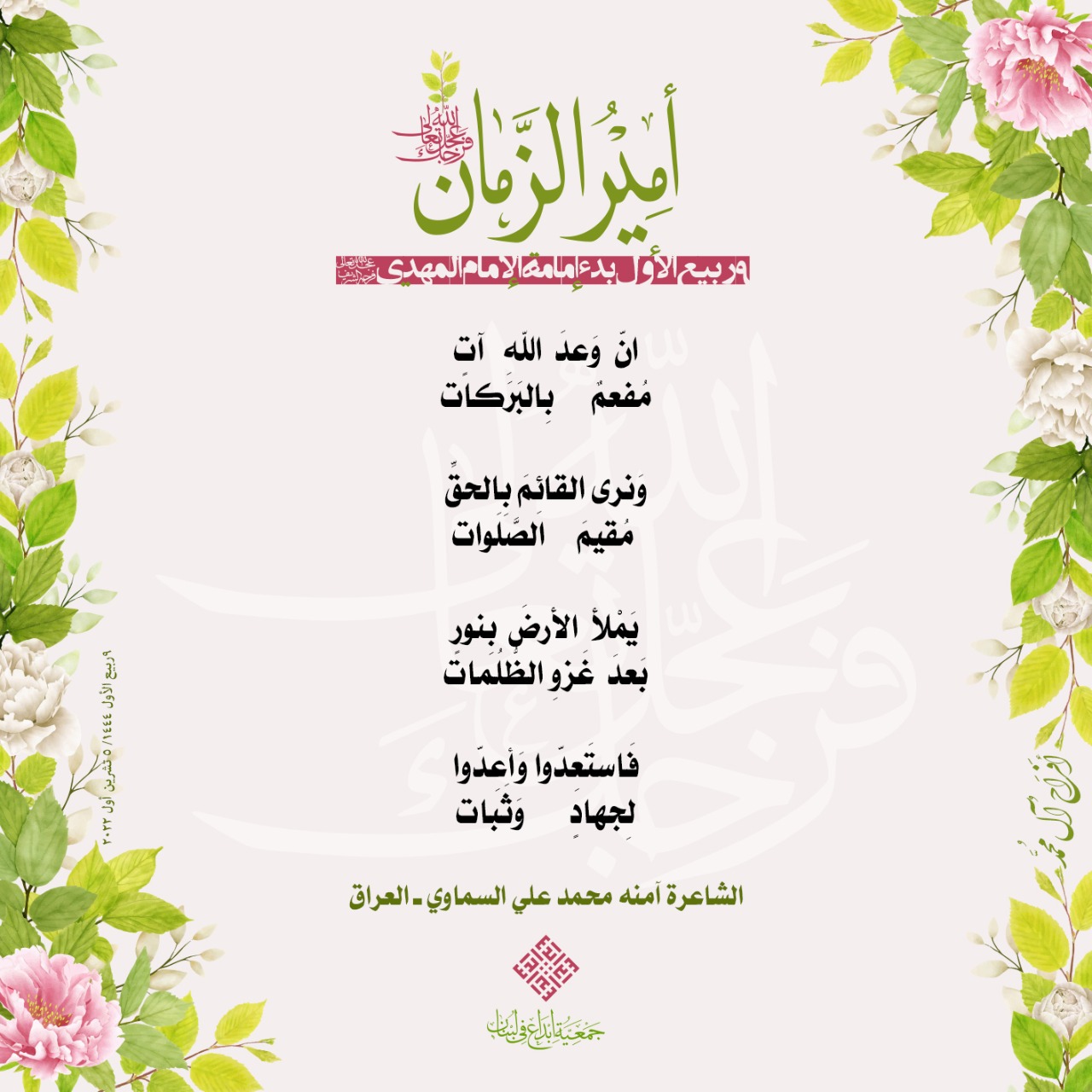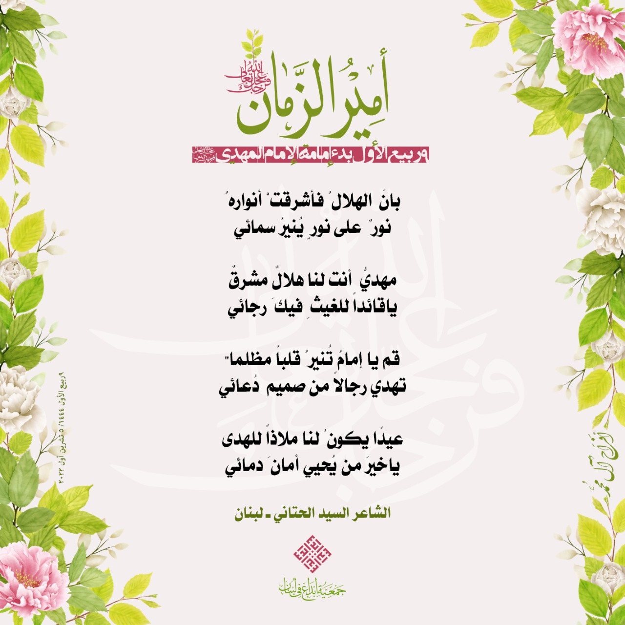 رباعيات #أمير_الزمان الشعرية بمناسبة تولي الإمام الحجة المهدي (عج) مقاليد الإمامة أطلقت جمعية إبداع في لبنان حملة شعرية بعنوان رباعيات #أمير_الزمان الشعرية #ابداع 5-10-2022 #إمامة_الحجة #رباعيات_شعرية