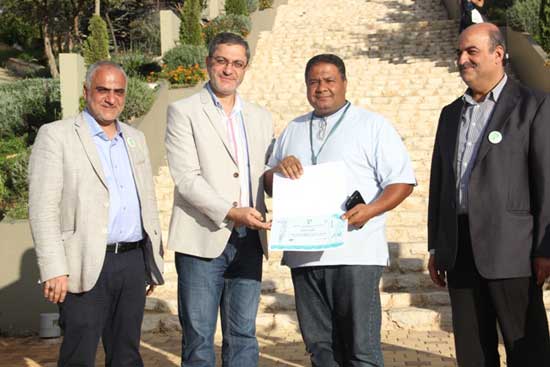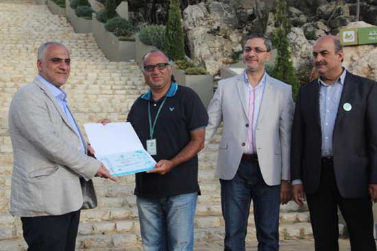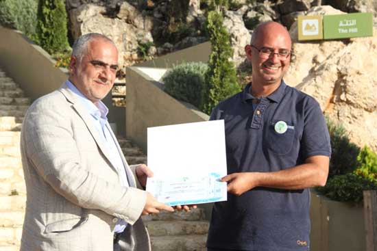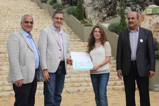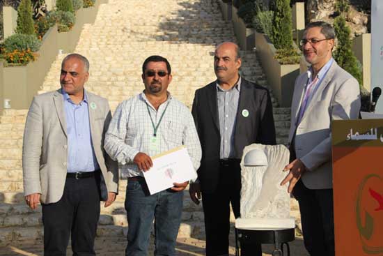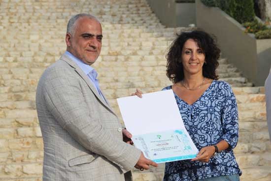 على ضفاف الشمس ارخوا ستائر أعمالهم .. جمعوا كل لون وحبر وحب .. انها ساعة الاحتفال والتكريم للمشاركين في سمبوزيوم اقليم التفاح مع تقديم الشاعر احمد منصور ومشاهدة فيلم "جميلة" من انتاج رسالات" كان الموعد .. رئيس اتحاد بلديات اقليم التفاح الدكتور محمد دهيني القى كلمته فقال : اصدقكم القول ايها الاصدقاء انه راعني هذا المشهد التشكيلي الملون بوجودكم كأن الربيع استعجل في طلته فازهر في ايلول ، وان الفراشات هي التي تنثر الوانها بفرح القادمين من كل ارجاء الوطن .. واضاف : هنا في هذه الارض نسج المهد الاول للنصر المطرز بعطاءات الابناء البررة وتضحياتهم من اجل ان يبقى لبنان شامخا عزيزا .. شكرا لحضوركم وشكرا لوانكم .. وموعدنا في افتتاح المعرض في وقت لاحق في اتحاد بلديات اقليم التفاح.. وبعد ذلك منحه رئيس جمعية ابداع الشاعر علي عباس قلادة الابداع والتميز للعام 2014 كما ومنحها لمسؤول الانشطة الاعلامية ومدير عام رسالات ومليتا الشيخ علي ضاهر تقديراً لجهودهما في تطوير الثقافة الفنية الملتزمة ولانجازهما هذا الحفل الفني الكبير كما ومنح عباس كل من المدير الاعلامي لمعلم "مليتاط احمد منصور" ومنسقة السمبوزيوم في اتحاد البلديات رنا فقيه ومصممة "تيمة" السميبوزيوم" الفنانة ايمان دعيبس شهادات شكر وتقدير .. وبعد ذلك وزعت الشهادات على المشاركين وكانت البداية مع النحات بطرس فرحات الذي اهدى مليتا "منحوتة الجيش والشعب والمقاومة" والفنان وجيه نحله قدم كتابه للاتحاد وابداع ومليتا والفنان برنار لوحته الرقم 177 وتوالت اللوحات وشهادات التقدير من الفنانين : واختم اللقاء بالصورة التذكارية على مدرج تلة مليتا .